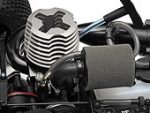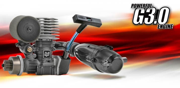 The little details weren’t missed out either. You can see the designer’s perfection in every Firestorm feature such as: a two-stage foam air filter with a 90-degree rubber elbow, fuel tube clips to keep the tubing out of the way of rotating parts, an innovative battery wire routing system, adjustable body posts to fit a variety of optional bodyshells, piston brake calliper actuation, high-flow manifold and silicone tuned pipe coupling and rubber mounts for the fuel tank. All this shows how much HPI listened to devoted owners and fans of stadium nitro RC trucks! On the power front the Firestorm features the new HPI Nitro Star G3.0 engine. This new high output engine features a racing standard SG shaft for better power transfer to the transmission. An aluminium crankcase with cooling fins and large heatsink head provide optimal cooling for long engine life and consistent performance. An aluminium tuned pipe and one-piece manifold give maximum torque and raw stump-pulling power! A reliable, easy pull starter and a dual stage foam filter round out the engine package to make it the ultimate power source.