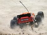 Pre-painted aerodynamic bodyshell with huge rear spoiler for extra traction, trimmed and already mounted!