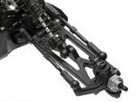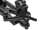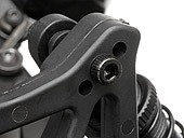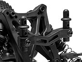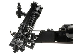 Integrated servo saver protects the steering servo, while the tilted bellcrank steering arms work with the suspension to prevent bump-steer