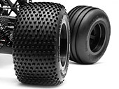 Front and rear wheels use the 12mm HPI stepped hex hub adapter, so replacement wheels are easy to find, and Nitro MT 2 wheels fit also