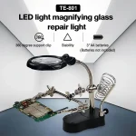TE-801 Multi-function LED Magnifier PCB Soldering iron Stand Holder Table Magnifying Glass