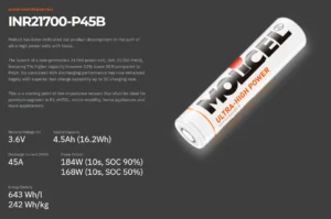 Upgrade your devices today with the Molicel INR-21700-P45B—a battery that combines cutting-edge technology, durability, and safety for all your high-power needs!