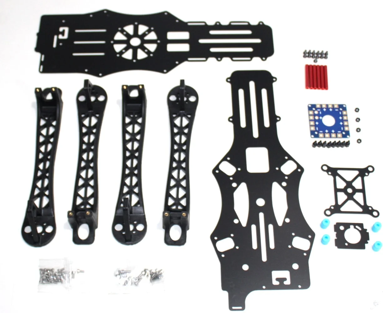 This quadcopter frame with the wheelbase of 500mm is specially intended to provide lots of mounting space.